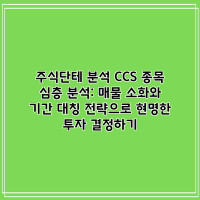 CCS 종목의 매물 소화 과정과 기간 대칭 전략을 활용한 투자 전략을 자세히 알아보고, 현명한 투자 결정을 위한 전문가 분석을 확인하세요.