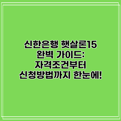 신한은행 햇살론15 완벽 가이드: 자격조건부터 신청방법까지 한눈에!