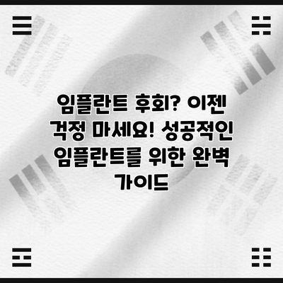 임플란트 후회? 이젠 걱정 마세요! 성공적인 임플란트를 위한 완벽 가이드