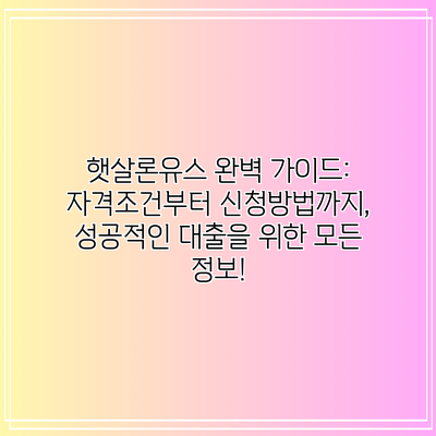 햇살론유스 완벽 가이드: 자격조건부터 신청방법까지, 성공적인 대출을 위한 모든 정보!