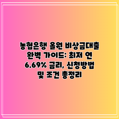 농협은행 올원 비상금대출 완벽 가이드: 최저 연 6.69% 금리, 신청방법 및 조건 총정리