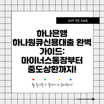 하나은행 하나원큐신용대출 완벽 가이드: 마이너스통장부터 중도상환까지!