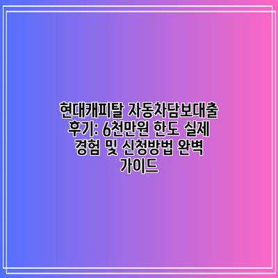 현대캐피탈 자동차담보대출 후기: 6천만원 한도 실제 경험 및 신청방법 완벽 가이드